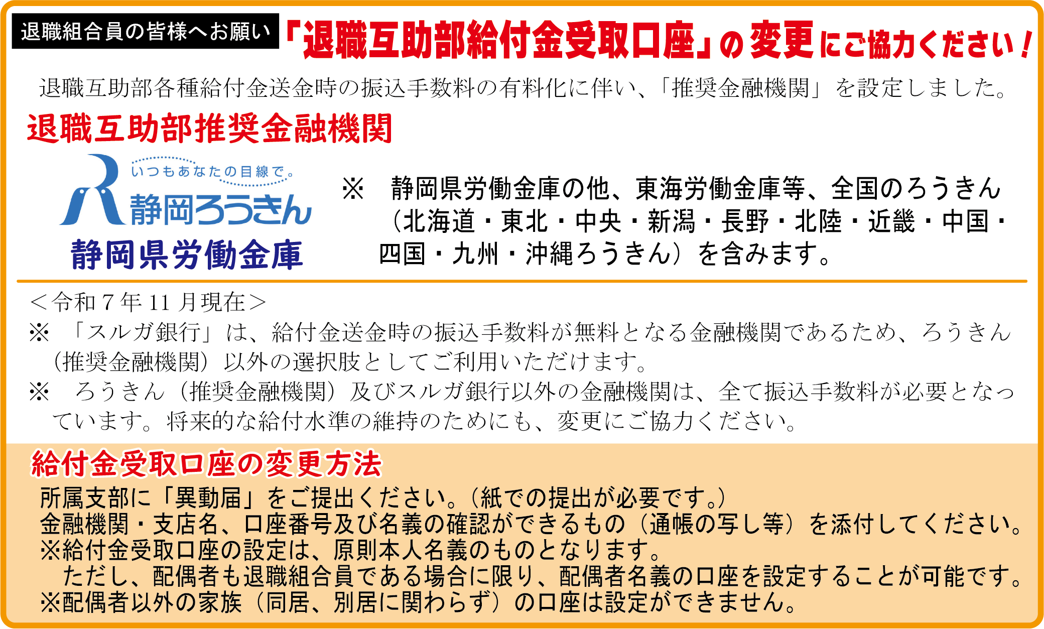 給付金受取口座の変更をする場合は、支部に異動届をご提出ください。